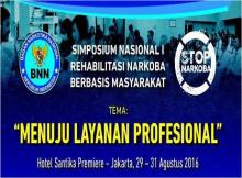 Badan Narkotika Nasional RI (BNN RI) dalam rangka peningkatan kualitas layanan rehabilitasi narkoba, dan dalam semangat peringatan Hari Anti Narkotika Internasional (HANI) 2016, akan mengadakan Simposium Nasional Rehabilitasi Narkoba Berbasis Masyarakat.