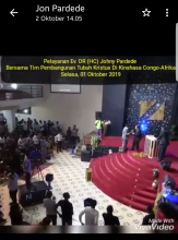 Ev. John Pardede dan Tim telah melakukan misi kemanusiaan di Kongo, sejak 1-7 Oktober 2019, sebagaimana disampaikan Ev. John Pardede kepada Gerejani Dot Com, melalui pesan singkat WA. Ev. John Pardede bersama Bishop Jonston Silitonga, dan Pastor Kasana Tshilenge, dan Pastor Robi Marpaung sebagai penterjemah.