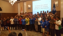 Pengukuhan dan serah terima kepengurusan DPP GAMKI masa bakti 2019 - 2024 di Grha Oikoumene PGI Jakarta, dimeriahkan juga dengan penampilan tarian Papua, dan pemberian tas Noken kepada Ketua MPR RI Bambang Soesatyo oleh Ketua Umum DPP GAMKI Willem Wandik, yang berisikan buku putih pokok-pokok pikiran GAMKI untuk Bangsa dan Negara. (DPT)
