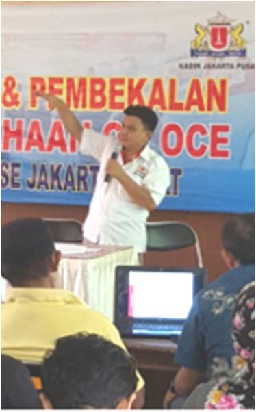 Kegiatan Sosialisasi dan Pembekalan OK OCE yang dijalankan KADIN Jakarta Pusat di Kelurahan Gelora hari ini, dibuka oleh Ketua KADIN Jakarta Pusat R.H Victor Aritonang, sekaligus menyampaikan pengantar kegiatan dimaksud. Turut hadir dalam kegiatan OK OCE siang hingga sore kemarin, Ibu Anna mewakili Camat Tanah Abang, Bapak Andar Tobing Sekretaris Kelurahan Gelora mewakili Lurah Mediawati, Bapak Anwar Tim OK OCE KADIN Jakarta Pusat, Ibu Dian dari PTSP (Pelayanan Tepadu Satu Pintu) Kecamatan Tanah Abang, dan Tim Bank BRI.