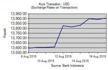 Berdasarkan pantauan Gerejani Dot Com terhadap nilai tukar dibeberapa bank nasional dan termasuk juga Bank Indonesia pada hari ini, menunjukkan tren terus melemahnya nilai Rupiah terhadap US Dollar. Bank Indonesia menampilkan data bahwa nilai jual rupiah Rp.13.907 (per US$), dan nilai beli Rp.13.769 (per US$). Sementara disejumlah bank swasta BUMN, seperti Bank Mandiri (jual=Rp.13.937, beli=Rp.13.753), Bank BNI 46 (jual=Rp.13995, beli=Rp.13815), Bank BRI (jual=Rp.13.975, beli=Rp.13.805). Tidak berbeda jauh dengan bank BUMN, BCA (jual=Rp.14.030, beli=Rp.13.730), Bank CIMB Niaga (jual=Rp.13.950, beli=Rp.13.830). Tentunya nilai tukar riil hari ini sangat jauh bertentangan dengan asumsi makro APBN Perubahan 2015 yang menandaskan nilai tukar Rupiah terhadap US$ berkisar Rp.12.500. (DPT)