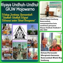 “Potensi Mojowarno menjadi destinasi wisata baru, yakni Desa Wisata Toleransi, juga layak didukung karena adanya tradisi pengucapan syukur panen, yakni Riyaya Undhuh-Undhuh, perayaan yang kental dengan tradisi toleransi, karena keterlibatan masyarakat Mojowarno secara plural, dan kegiatan tersebut sudah berlangsung satu abad lebih, sebagaimana usia GKJW yang juga sudah 1 abad lebih” pungkas Margianto yang juga putra Jombang. (DPT)